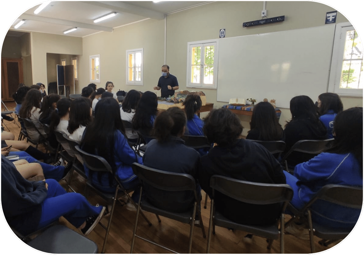 Finalmente, durante la tarde del 25 de octubre, nuestra Fundación realizó un taller en el marco de la Semana de Ciencias del Colegio Santa Úrsula de la comuna de Maipú, dirigido a niñas desde 7° básico a 3° medio. Nuevamente, llevando la temática de manejo de recursos hídricos y haciendo uso de nuestra maqueta, se logró una actividad muy fluida y didáctica en que la interacción entre el expositor y el público fue constante.